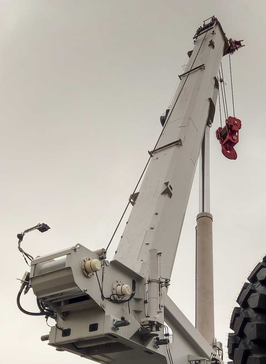 Базовое исполнение: пятисекционная стрела с профилем овоидного типа; основная крюковая обойма г/п 55т.; вспомогательная крюковая обойма г/п 25т.; грузовая лебедка с планетарным редуктором и дисковым тормозом; противовес массой 1,0т. с механизмом для монтажа-демонтажа противовеса; современная комфортабельная кабина оператора, утепленная изолирующим материалом; комфортабельное кресло оператора; электропропорциональная система управления при помощи джойстиков, отопитель кабины оператора, предпусковой подогреватель двигателя шасси, температура эксплуатации ±40˚С.