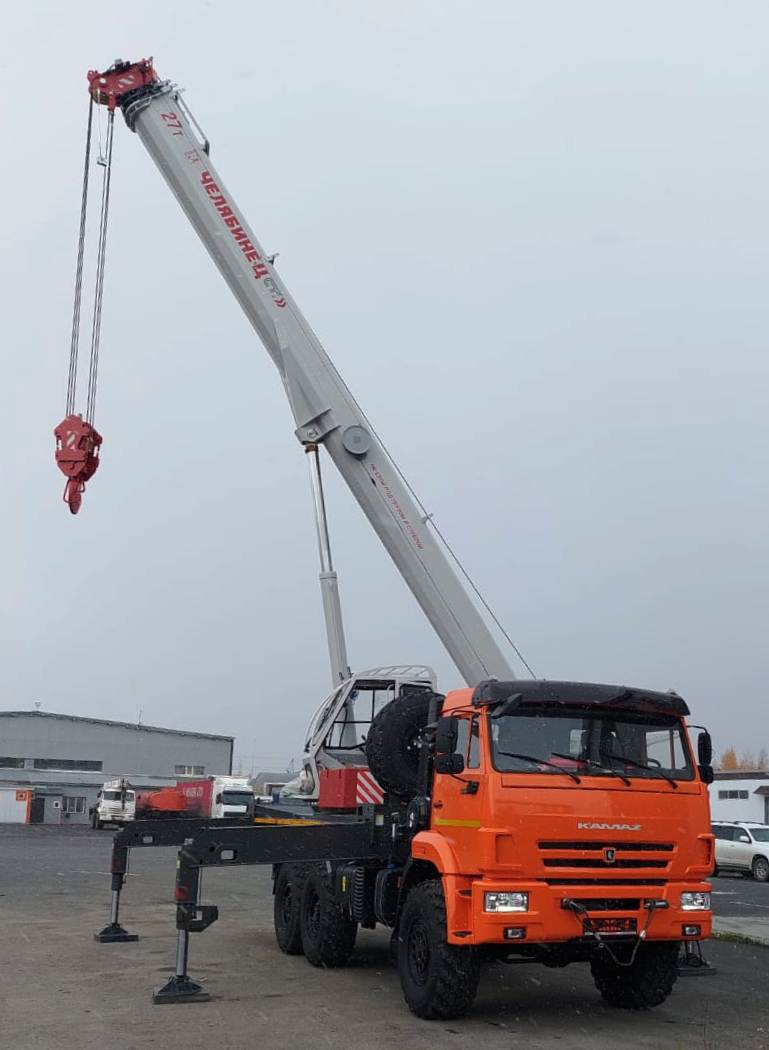 Автомобильный кран Челябинец СТ на шасси КАМАЗ обладает максимальной грузоподъемностью 27 тонн. Стрела автокрана достигает длины 33 метра.