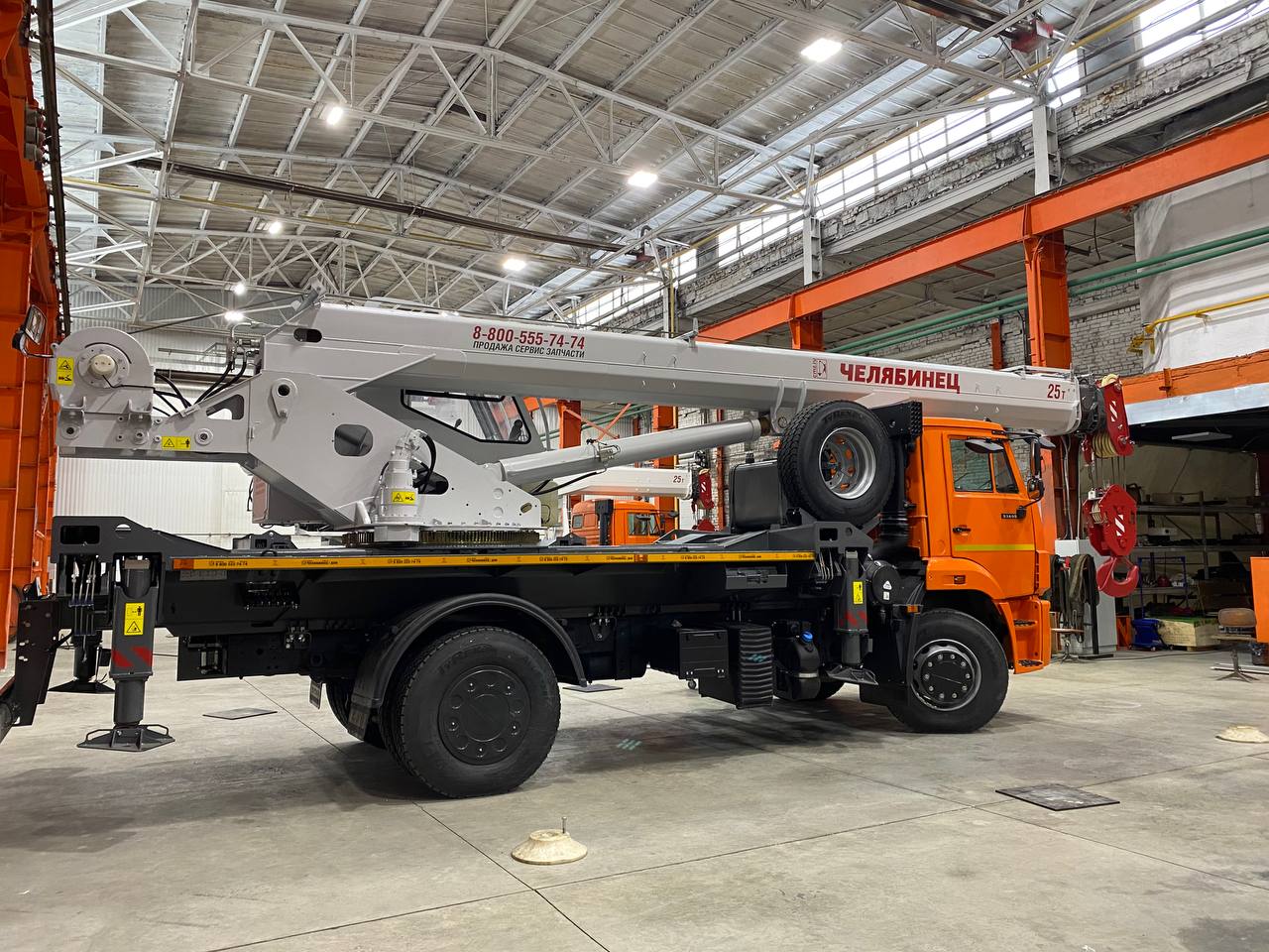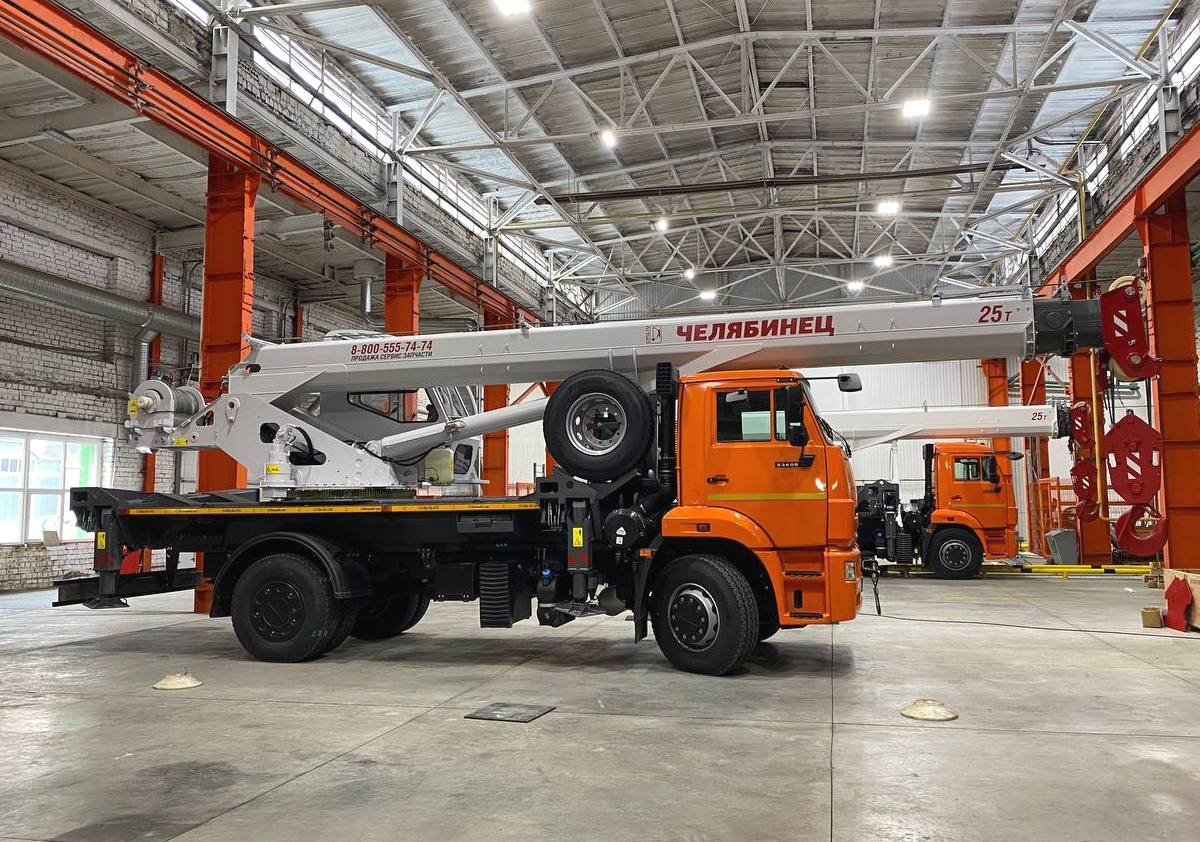 На Челябинском механическом заводе выпустили компактный «городской» автокран. Крановая установка Челябинец грузоподъемностью 25 тонн смонтирована на базе шасси с колесной формулой 4х2. Машина оптимальна для перемещения и маневрирования в плотном городском потоке и работы в ограниченном пространстве.
