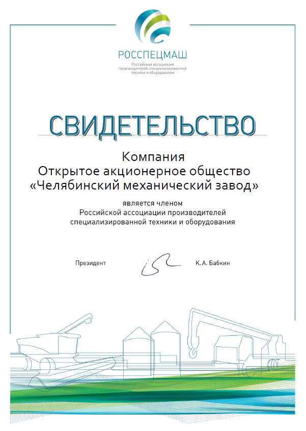 Отметим, что в 2018 году ЧМЗ вступил в Ассоциацию «Росспецмаш»: «Мы внимательно следим за всеми проектами и программами, цель которых развитие производства специализированной техники в России и поддерживаем ту линию, которую проводит Ассоциация «Росспецмаш» и Минпромторг России. Поэтому Челябинский механический завод вступил в «Росспецмаш». Уверен, что объединение производителей спецтехники в Ассоциации поможет в консолидации усилий по развитию машиностротельного комплекса, и это будет способствовать созданию новой современной спецтехники, которая будет высокоэффективной в эксплуатации и конкурентоспособной на мировом рынке», — прокомментировал решение об участии в объединении генеральный директор ОАО «ЧМЗ» Петр Вагин.